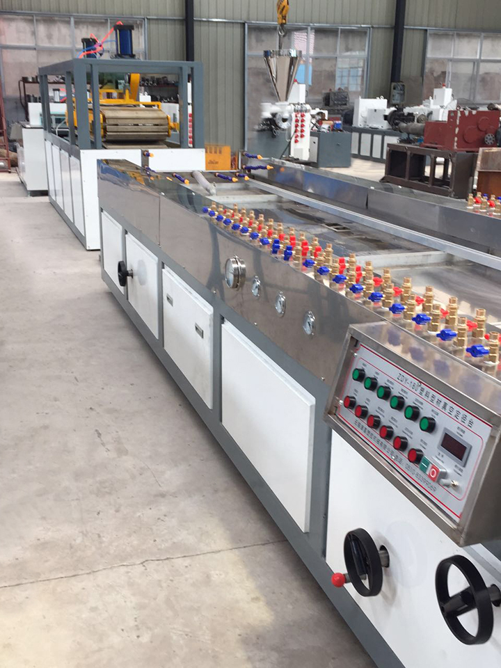 護墻板擠出設備主要由錐型雙螺桿,模具、真空型臺、牽引機、切割機、翻料架組成。生產線采用自動化控制,自動化程度高,設備穩定,操作簡便,生產效率高。