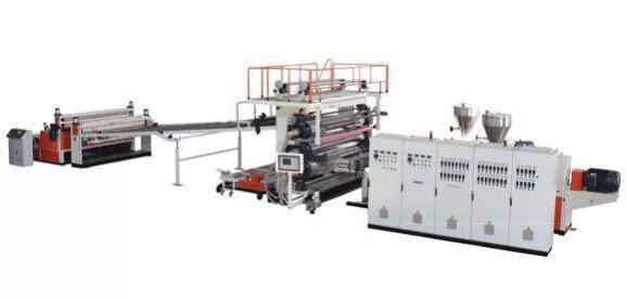 仿大理石設備由基材擠出生產線、覆膜機、UV滾涂干燥生產線等組成。